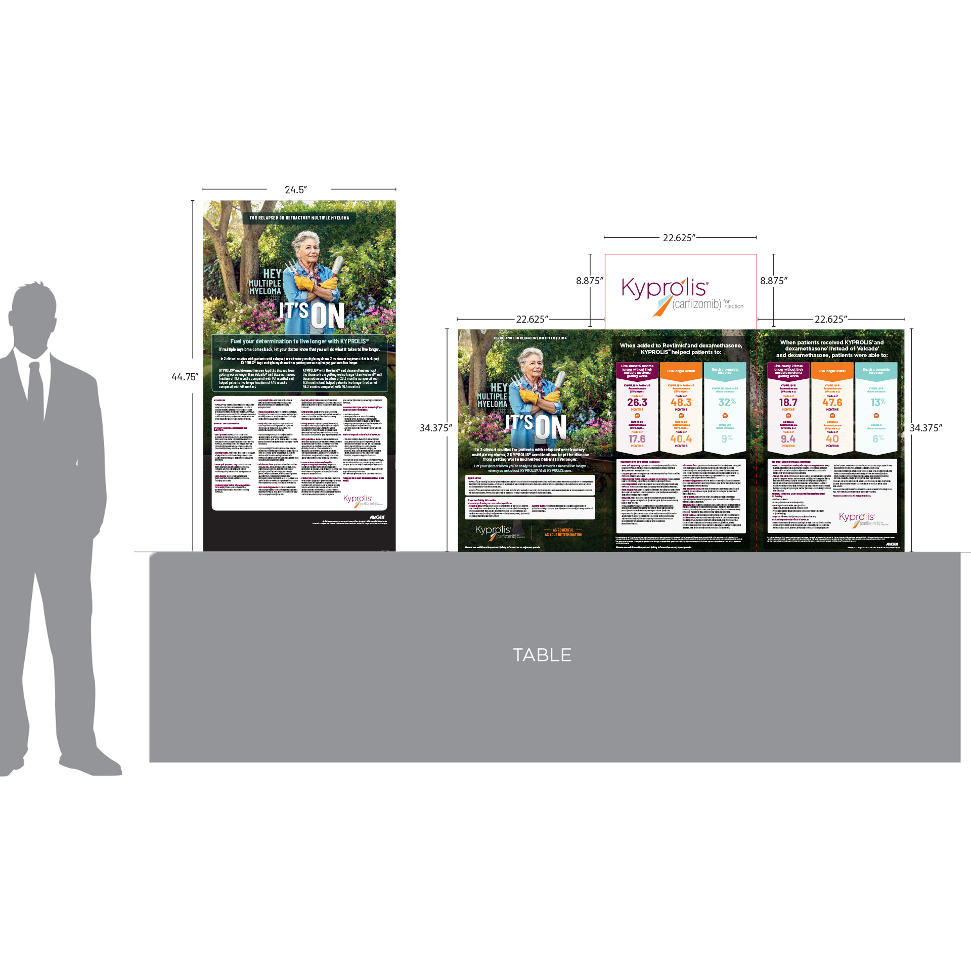 Client requested a 4-panel standing poster based on an existing design, with added elements featuring product information. Feature Art needed to be extended horizontally, text re-sized and re-flowed, all within a short turnaround time.